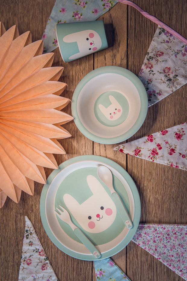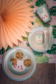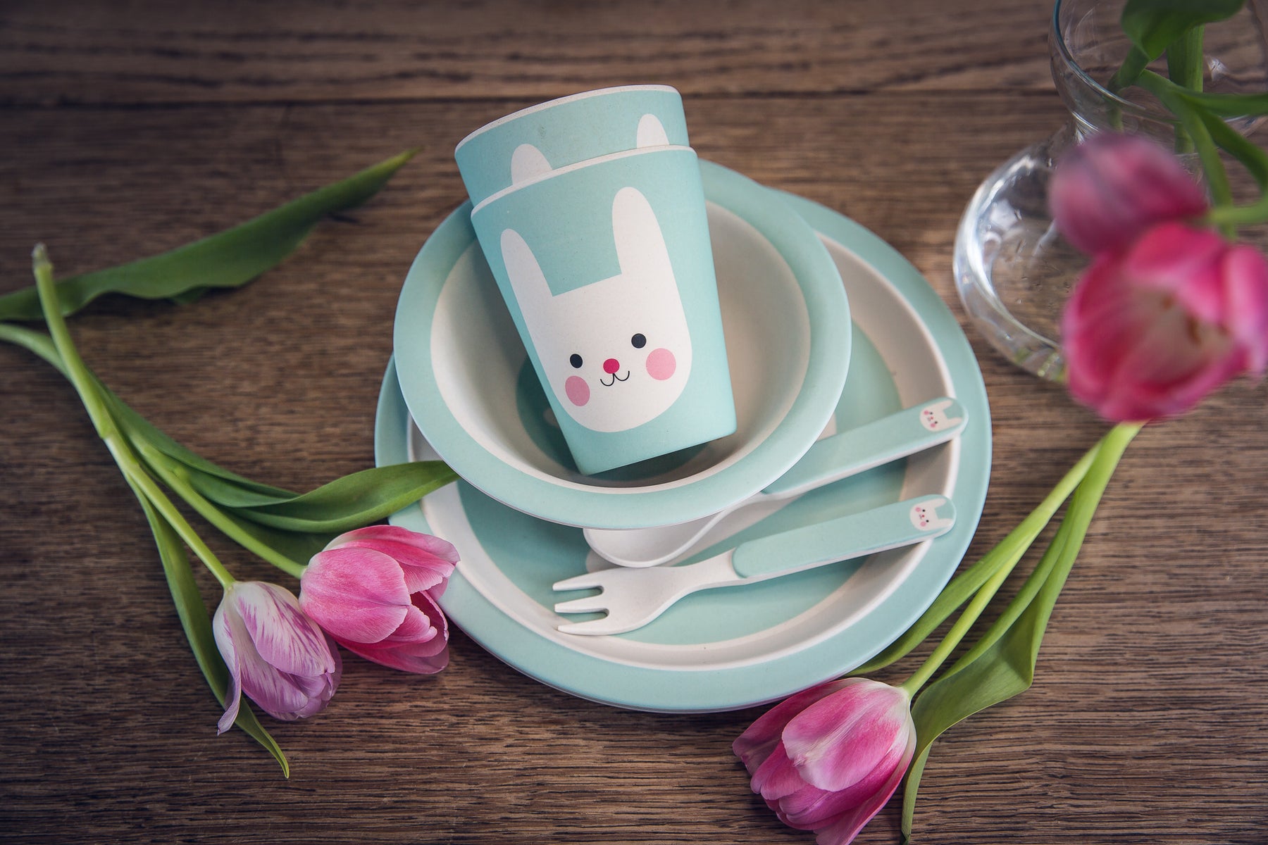 Pastel Blue bunny plates, bunny platters, fun pastel bunny bunting and pastel table cloths for hire - great for Easter celebrations as well as other birthday celebrations.